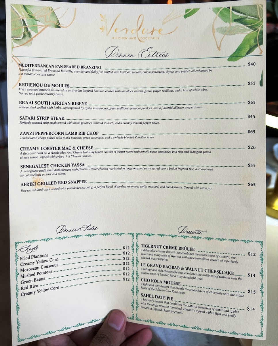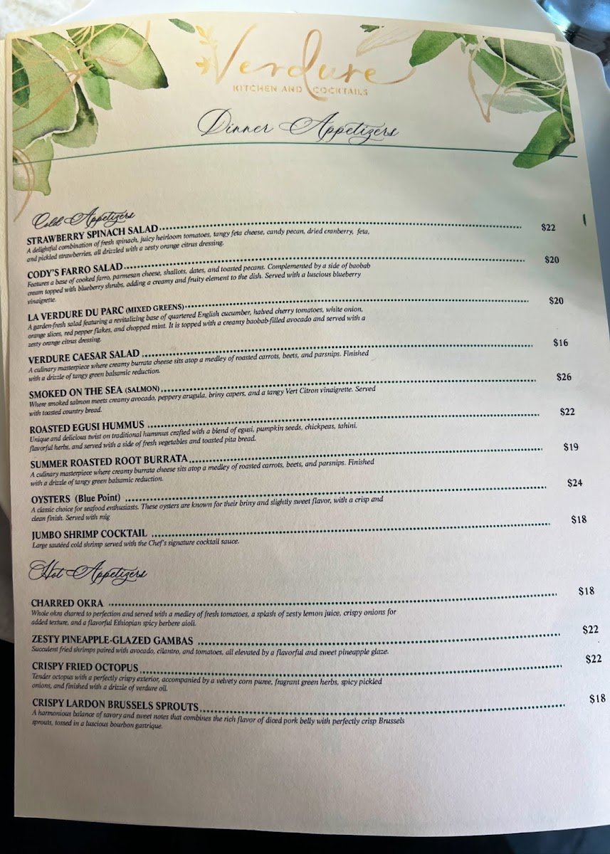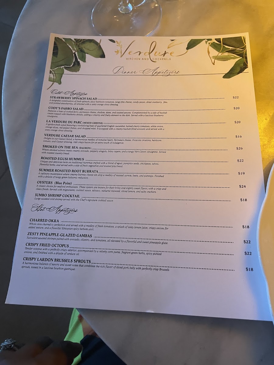 At Verdure Kitchen & Cocktails, the menu is a celebration of fresh, vibrant flavors. Situated in the heart of Atlanta, this spot brings together the best of locally sourced ingredients with a contemporary twist. Whether you're in the mood for a light bite or a hearty meal, the offerings cater to every craving, from mouthwatering appetizers to thoughtfully crafted main dishes. The Verdure Kitchen & Cocktails Menu is designed to offer something for everyone, with an emphasis on seasonal ingredients that elevate each dish. Sip on a crafted cocktail while you explore the diverse options - each dish is prepared with care and creativity, ensuring a memorable dining experience every time. The combination of bold flavors, fresh ingredients, and an inviting atmosphere makes this menu an experience worth savoring.